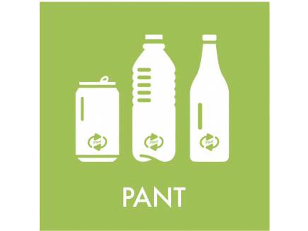 - Sorter let PANT med dette affaldspiktogram.
