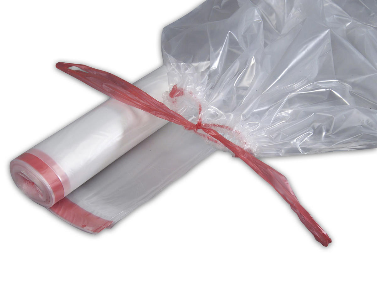 Affaldssæk LD Klar regenerat med snoretræk. Affaldssæk der er fremstillet af genbrugsplast. Kraftigere kvalitet end vores standard affaldssæk.
