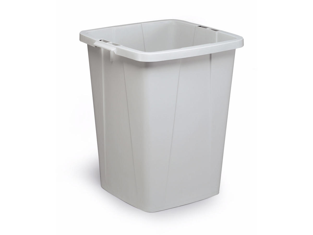 Kvadratisk affaldsspand med bærehåndtag til enkel transport. Indhold 90 liter. Ideel til affald, sortering og genanvendning. Godkendt til fødevarekontakt. Som tilbehør findes låg samt vogn til en eller to affaldsspande, samt klisteretiketter til opmærkning af spanden. Mål 605x510x 487mm (HxBxD) (inkl. håndtag).