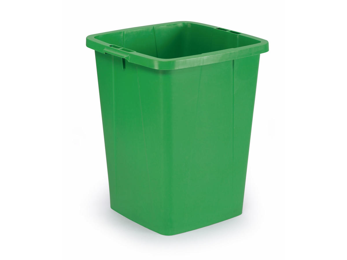 Kvadratisk affaldsspand med bærehåndtag til enkel transport. Indhold 90 liter. Ideel til affald, sortering og genanvendning. Godkendt til fødevarekontakt. Som tilbehør findes låg samt vogn til en eller to affaldsspande, samt klisteretiketter til opmærkning af spanden. Mål 605x510x 487mm (HxBxD) (inkl. håndtag).