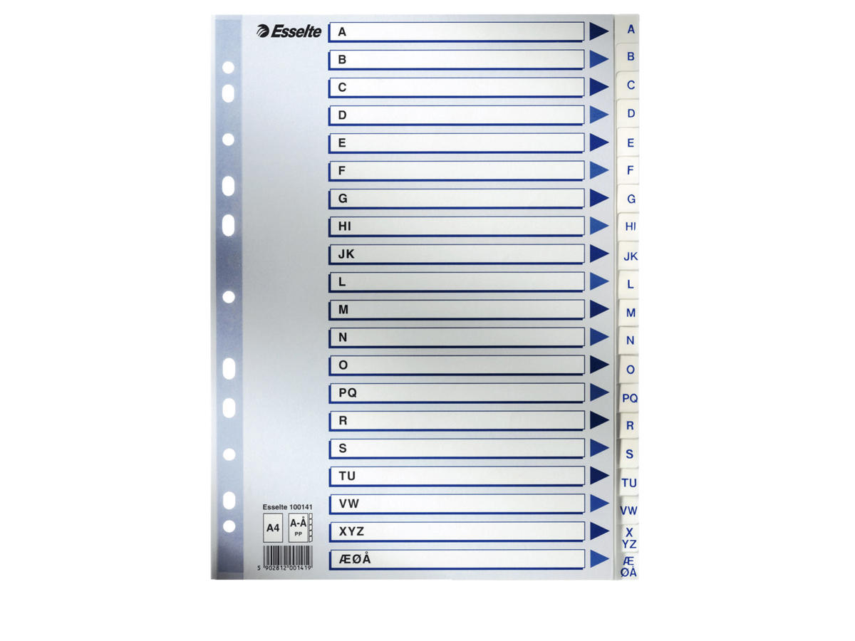 Med Register Esselte bliver det en leg at holde styr på dine dokumenter. Takket være de Alfabetiske faner fra A til Å (DK), kan du nemt og hurtigt finde det dokument, du leder efter. De 20 faner gør det nemt at opdele dokumenterne i kategorier, der passer til dine behov.