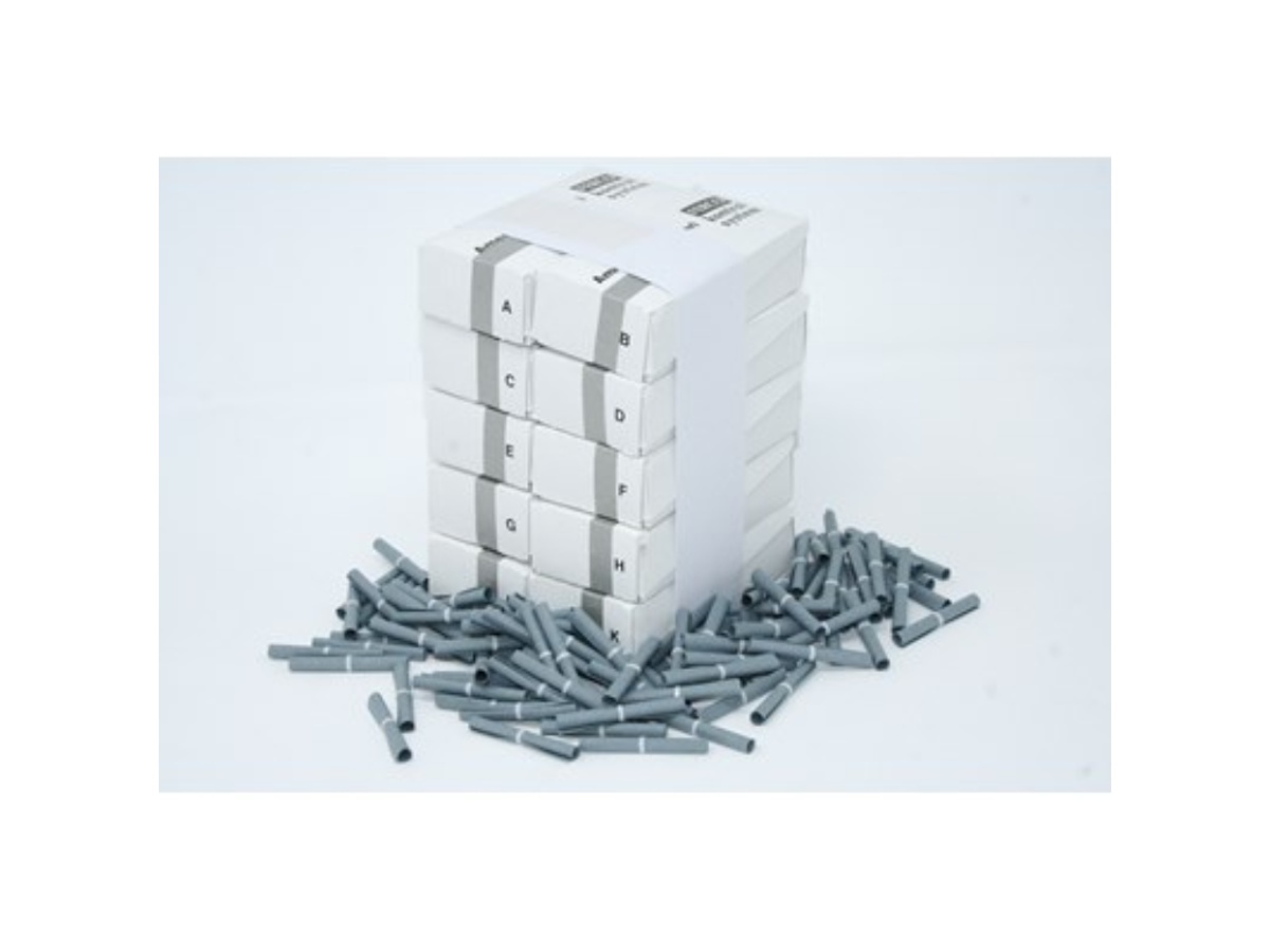 Løber fra 1-100 med et bogstav i hver æske. Lotterisedlerne måler 40x40mm.