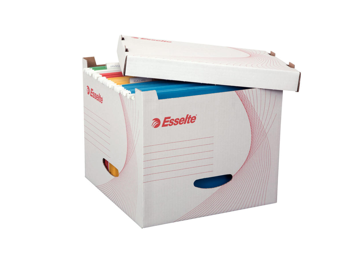 Opbevaringskassen er blevet værdsat af vores kunder i mere end 25 år, og tonsvis af dokumenter er arkiveret i Esselte Standard æsker hvert år på arbejdspladser i alle sektorer. Denne pålidelige og effektive løsning er det perfekte valg til dine opbevaringsbehov.