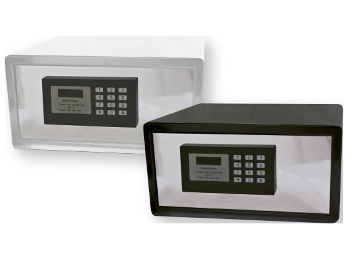 Smart lille hotelboks med elektronisk nøglelås - Front betjent boks med elektronisk lås med masterkode samt nødnøgle