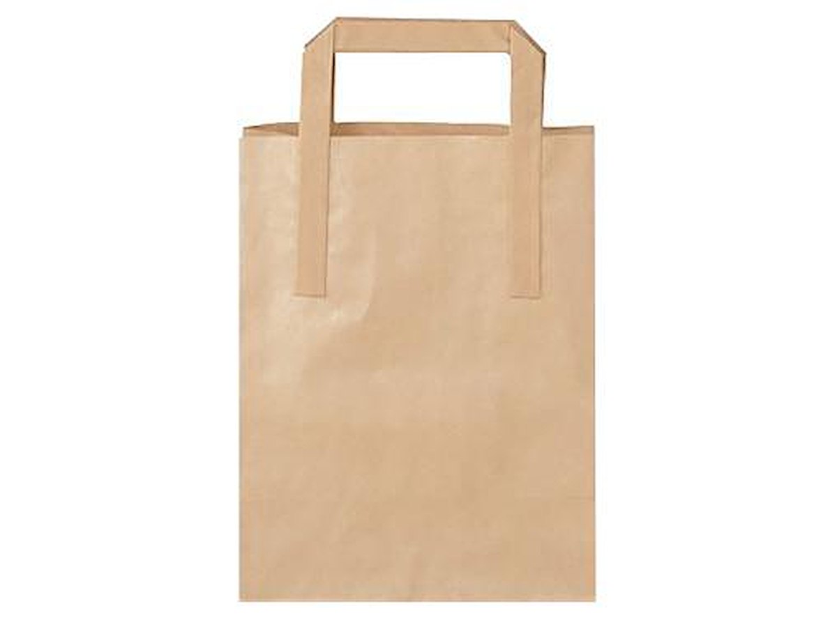 Bærepose papir brun 180x80x220mm 4,9 liter m/ flad hank 250 stk