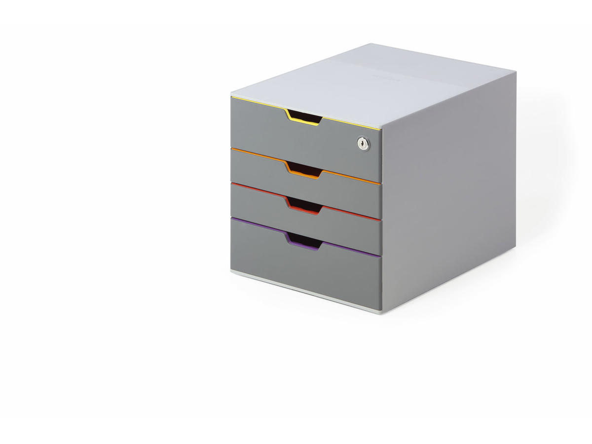 Skuffekabinet eller skuffeboks - uanset hvad du kalder den, er VARICOLOR® 4 SAFE et klassisk skuffekabinet i et moderne design til opbevaring og organisering af papir og andre ting. Den kan stå på borde, bænke, reoler og hylder eller bruges i kontorskabe. Skuffekabinettet har letgående og lydløse skuffer i forskellige farver med udtræksstop.