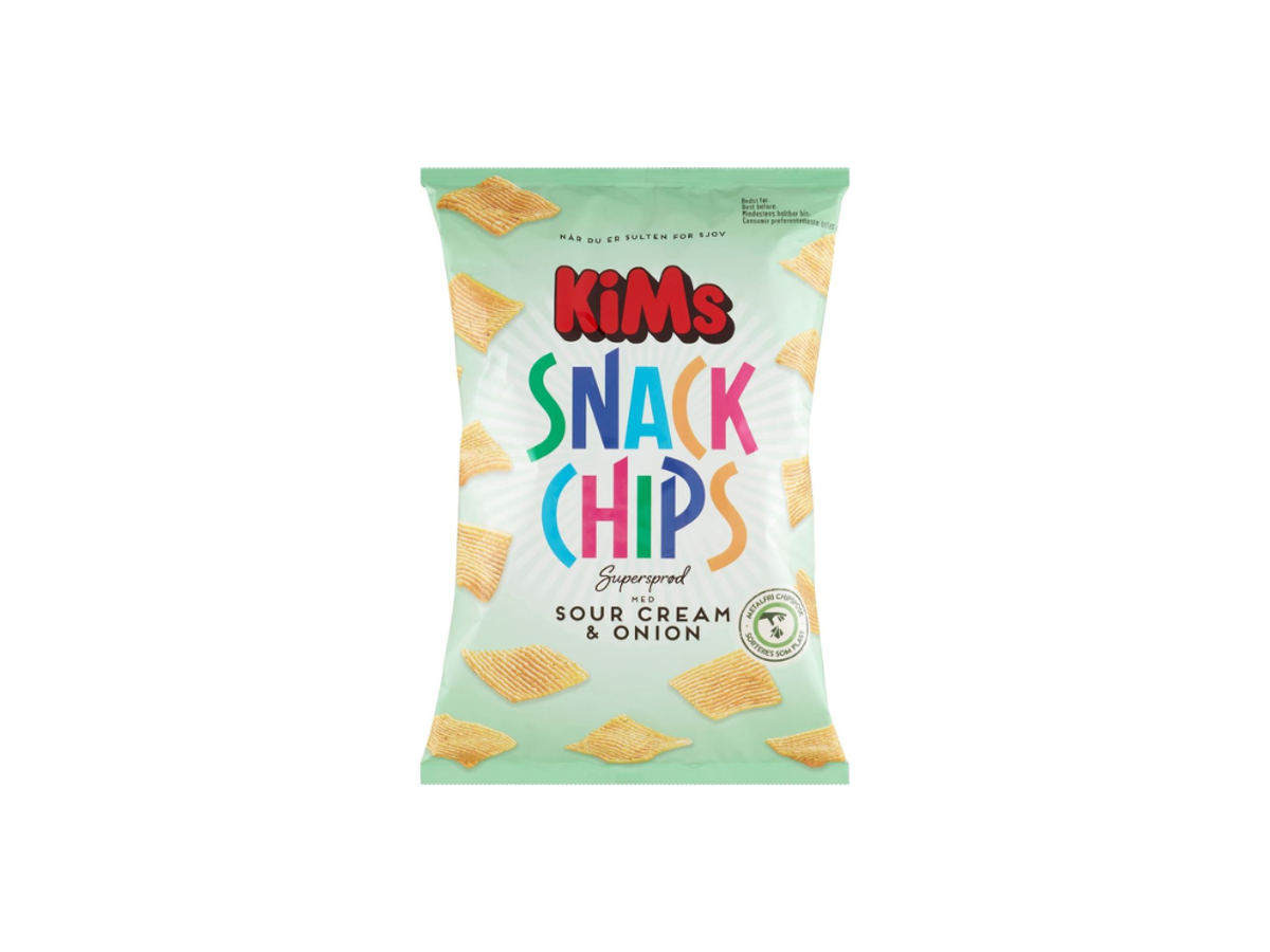 KiMs snack chips er lette at kende på deres karakteriske firkantede form og krumning, Dette er originalerne, der i slutningen af 1980´erne lærte danskerne at snacke, Siden da har de været alles favorit, Er de tre bedste ting i hele verden ikke bare det søde,, det syrllige og det cremede? KiMs Snack Chips Sour Cream & Onion giver dig netop dette i perfekte samknas.