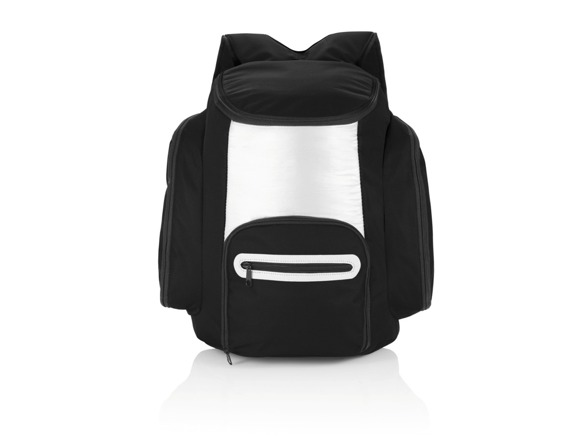 600D kølerygsæk sølvfarvet indvendigt, holder alle dine mad- og drikkevarer afkølet. Foran er der en ekstra lomme med printet farvedetalje omkring lynlåsen til opbevaring af dine andre ejendele.e