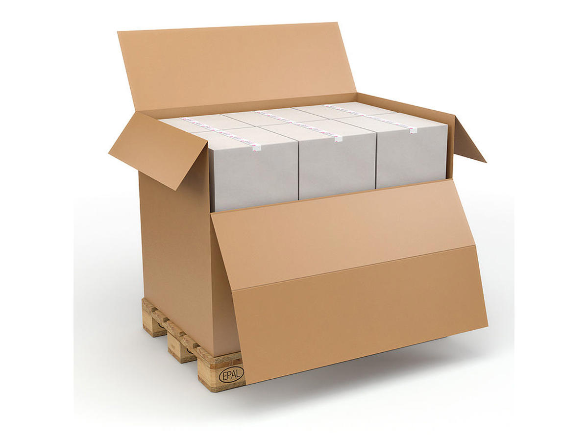 En ideel emballage til eksport, da den er velegnet til ekstra lange distancer. Målene på kassen er nøjagtigt tilpasset, så de passer til transportpaller.