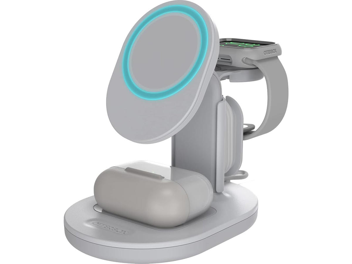 OtterBox trådløs opladningsstander - 3-i-1 Hvis du leder efter en pålidelig, holdbar og multifunktionel opladningsstander, så er OtterBox trådløs opladningsstander - 3-i-1 helt sikkert noget for dig. Denne opladningsstander er designet med tanke på din bekvemmelighed. Det fantastiske ved denne opladningsstander er dens 3-i-1 funktion. Du kan samtidig oplade din smartphone, smartwatch og AirPods. Dette gør den til den perfekte løsning til dig, som ønsker at oplade flere enheder samtidig på en mere organisatorisk måde. Derudover har OtterBox trådløs opladningsstander - 3-i-1 en utrolig hurtig opladningstid. Når du placerer dine enheder på standeren, vil de hurtigt blive opladet, så du aldrig går ned på strøm igen. Opladningsstanden har også en stilfuld design, som passer ind i enhver indretning. Den er fremstillet med en aluminiumsbase og justerbare stik, som passer til forskellige størrelser af enheder. Den er også kompakt og let, hvilket gør den nem at transportere og flytte rundt på. Alt i alt er OtterBox trådløs opladningsstander - 3-i-1 en fantastisk mulighed for dig, som ønsker en pålidelig, multifunktionel og stilfuld opladningsløsning til dine enheder. Køb din OtterBox trådløs opladningsstander - 3-i-1 i dag og nyd friheden ved hurtig og praktisk opladning på en mere organisatorisk måde.