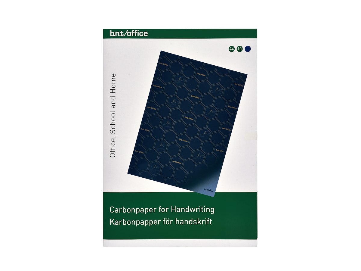 Karbonpapir i A4 str. til håndskrift, blå gennemslagsfarve, 10 ark pr. æske.