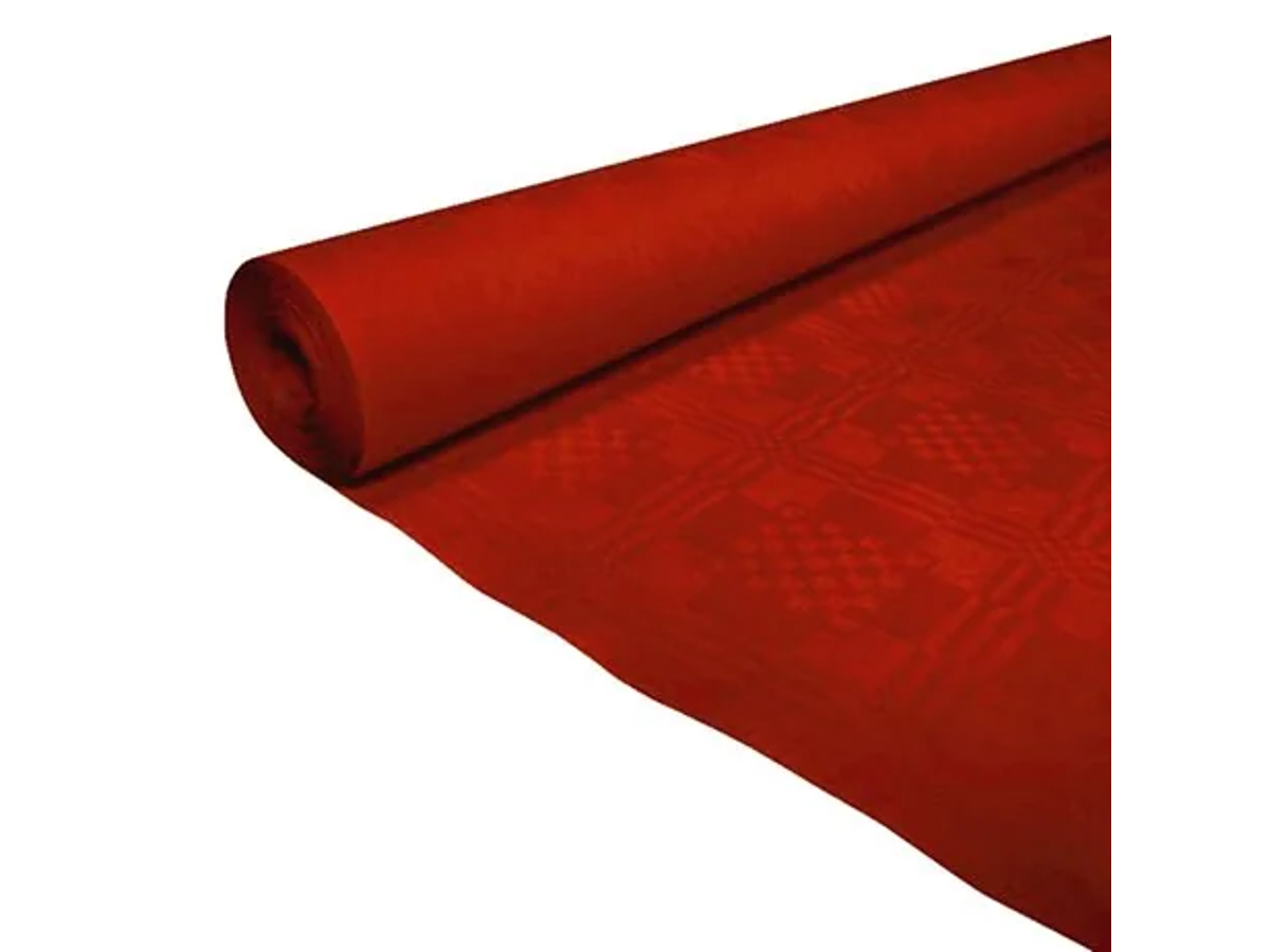 Denne papirdug med damask prægning, er ideel for dig, der ønsker en pæn men prisvenlig borddækning. Dugen er fremstillet i papir og er således en engangsdug, men med prægningen på overfladen, er den stadig flot på bordet til en hver begivenhed, hvor der ikke er ligeså store krav til holdbarheden. Dugen er nem at klippe til i ønsket længde og da det er en papirsdug, bliver oprydningen bliver let, idet dugen blot kan rulles sammen og smides ud.