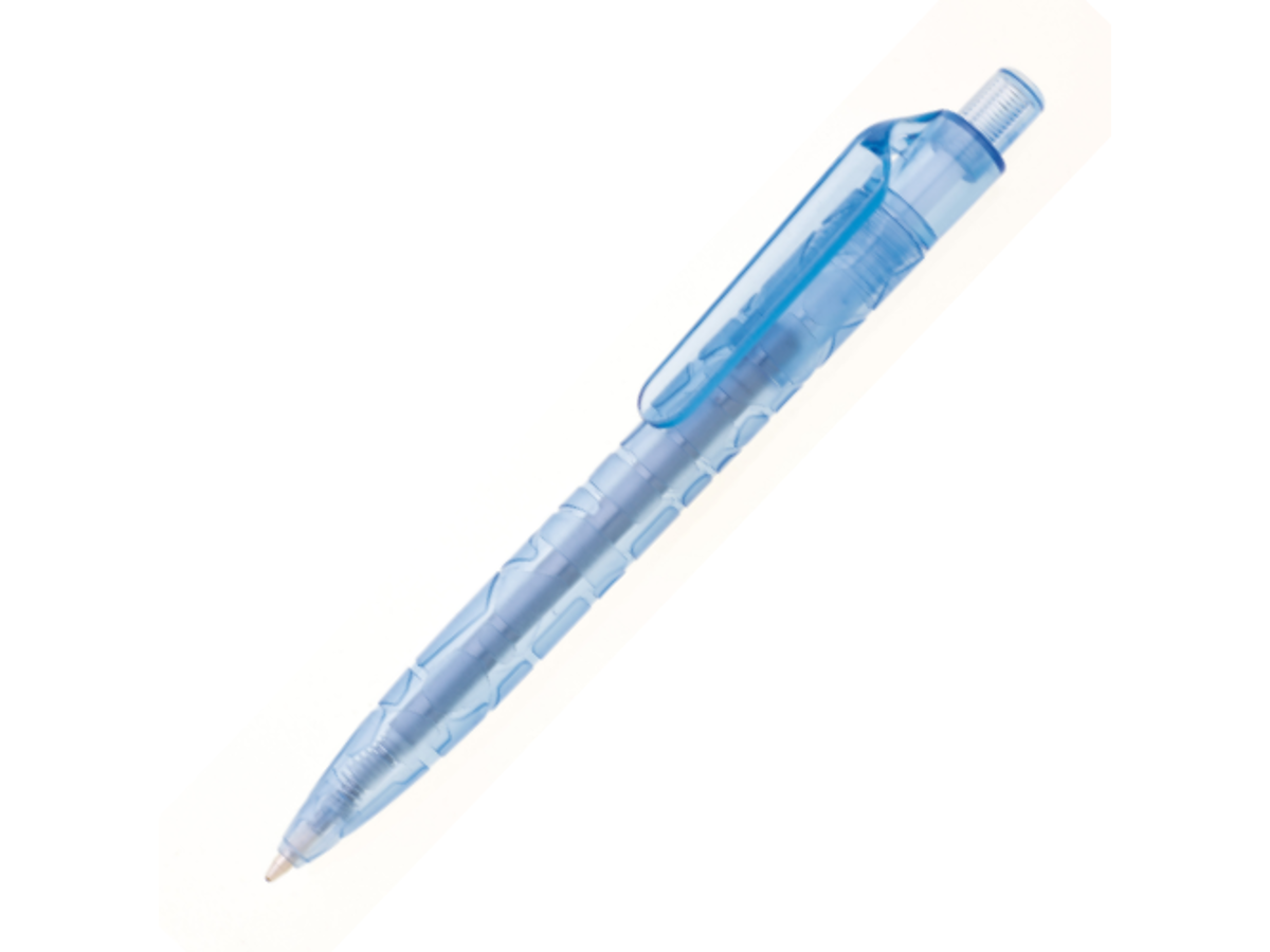 Plastikkuglepen lavet af genbrugsflasker med gennemsigtig lyseblå krop med relief og glat clips tril tryk. Blå jumbo refill.