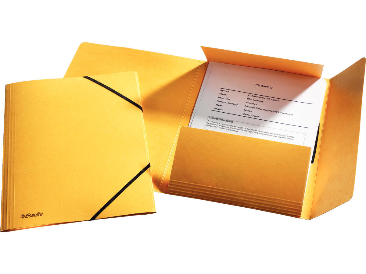 Elastikmappe A4 karton gul Esselte m/3 klapper