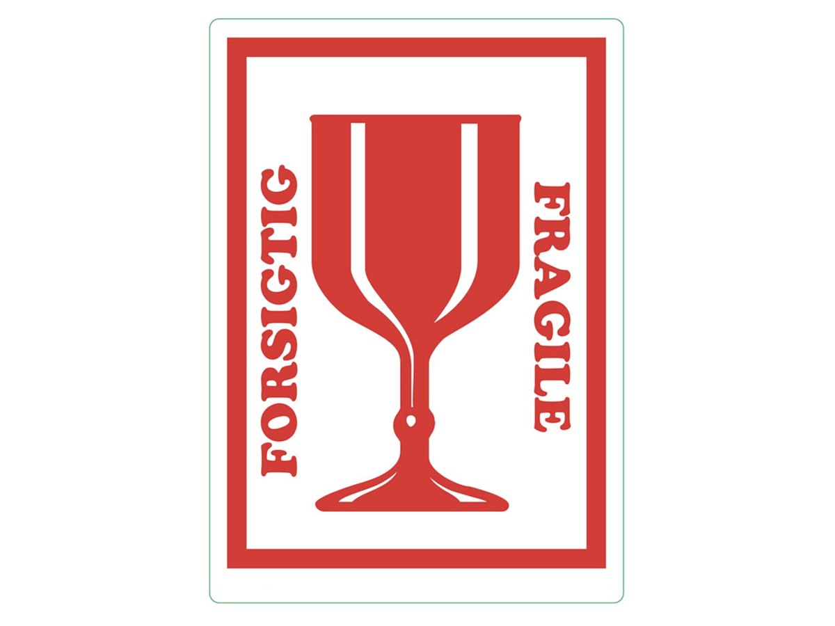Etiketten indeholder ofte et velkendt advarselssymbol og/eller tekst, der meget tydeligt indikerer for speditøren eller lagerpersonalet vigtig information om, hvordan man håndterer forsendelsen.