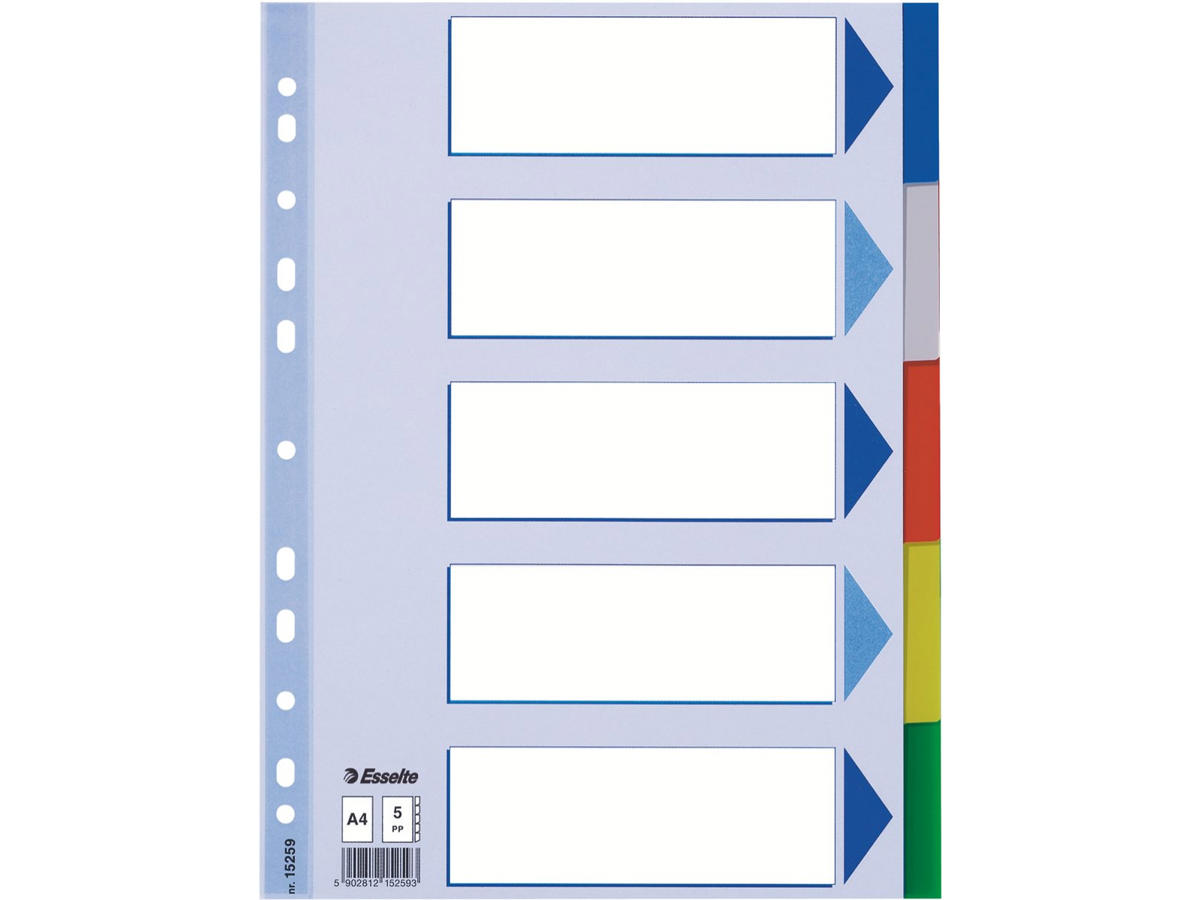 Esselte Skiller, Faneblad A4 er forsynet med 5 farvede faner for nem sortering. De forskellige farver hjælper dig med at finde det, du leder efter, i en fyldt mappe. Dette gør dem ideelle til opbevaring af projekter, rapporter, præsentationer og meget mere.