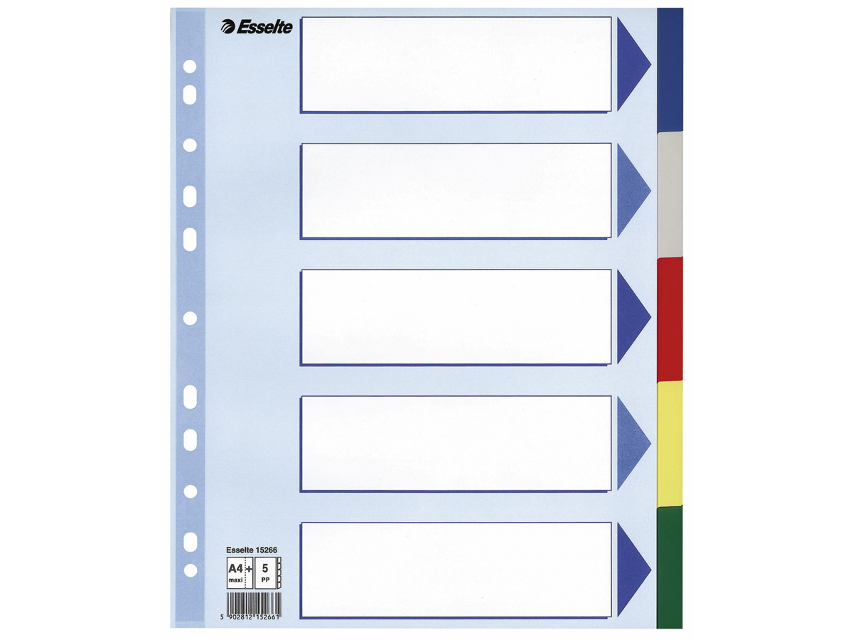 Faneblad Esselte A4 Maxi er et uundværligt redskab, når du skal holde orden i dine dokumenter. Med sin solide og holdbare kvalitet passer disse faneblade perfekt til det krævende kontormiljø eller den studerendes fyldte mapper. Med dette produkt får du Esseltes dokumenteret pålidelige kvalitet.