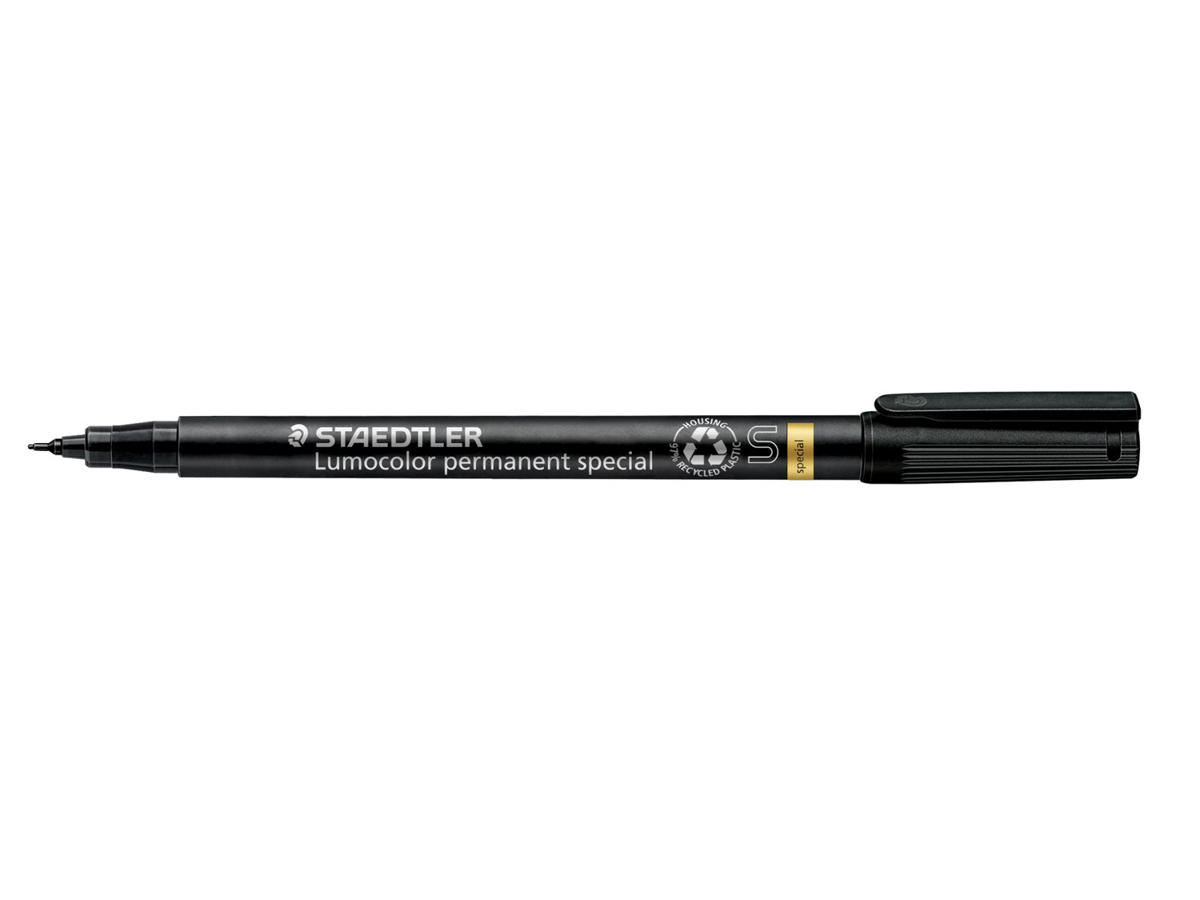 Denne Fiberpen Universal STAEDTLER Lumocolor permanent special marker er fremstillet af 97% genanvendt plast, hvilket understreger STAEDTLER's engagement i at være ansvarlige og bæredygtige. Markøren tørrer på sekunder, hvilket gør den ideel til både højre- og venstrehåndede brugere, og den hæfter på mange specielle overflader, som andre markere ikke holder på.