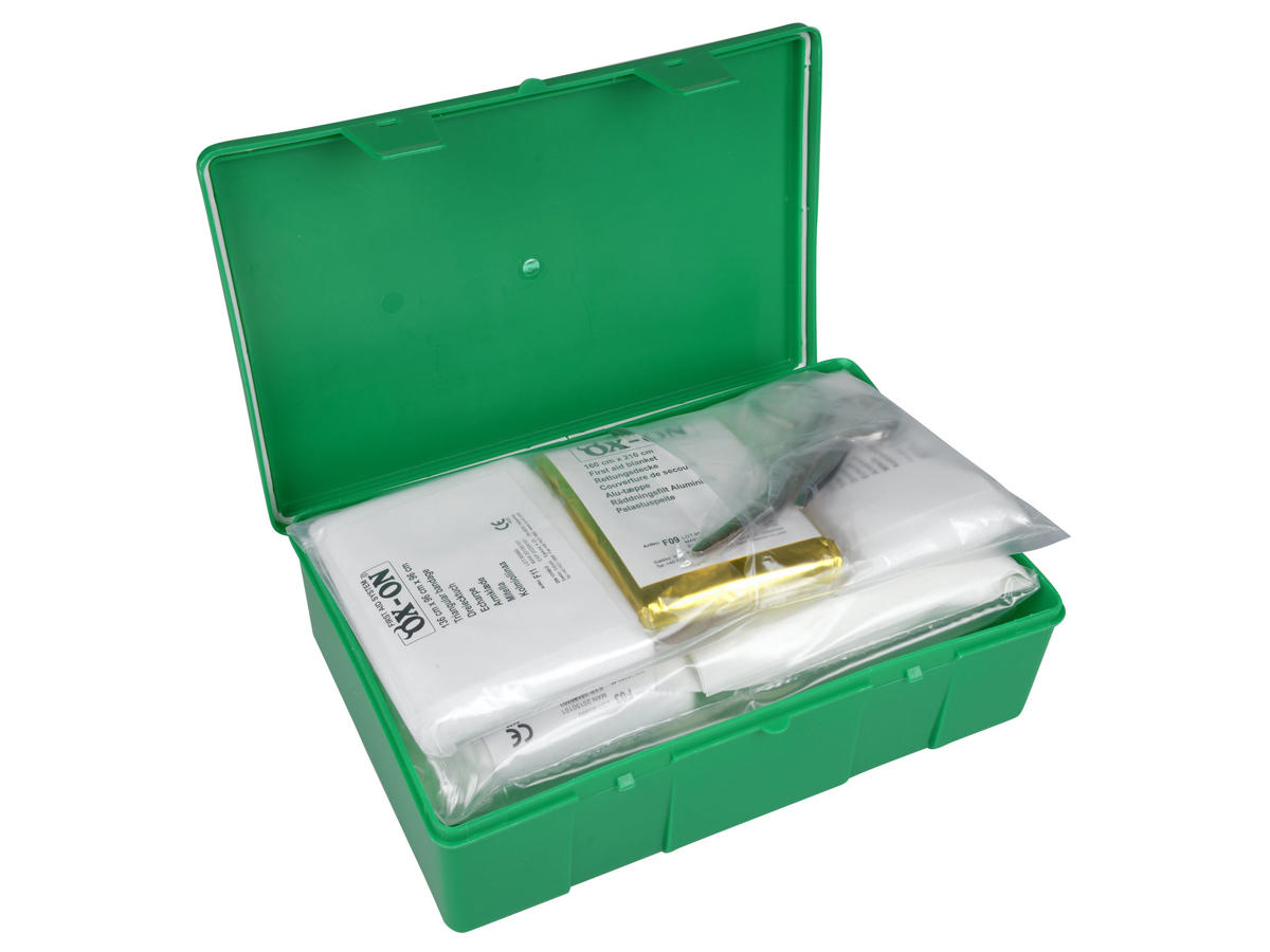 First Aid Box Comfort er en velassorteret førstehjælpskasse til dig, der vil være sikker på at kunne yde førstehjælp – uanset hvor du er! Denne førstehjælpskasse er fyldt med uundværlige remedier, du kan få brug for ved både små og større ulykker. Du kan derfor have stor gavn af First Aid Box Comfort i fx skurvognen, sommerhuset, campingvognen eller i bilen. Førstehjælpskasse indeholder: Plasterrulle 2,5x5cm, 10 blandet Plaster i forskellige størrelser Kompresforbinding 1 x 6x3 cm 1x 8x10cm 1x 10x12cm Gazekompress 60x40cm, 60x80cm, Gazebind 6x400cm, 8x400cm Alu-tæppe 160cmx210cm, Gazekompresser 10x10cm. Armklæde 136x96x96cm Sårens servietter Engangshandsker Saks Førstehjælpsfolder. Kassen Du får alle delene leveret i en praktisk grøn plastkasse, så du altid har remedierne samlet, når der er behov for at yde hjælp.