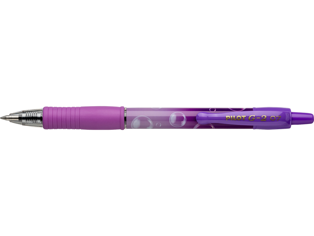 Den populære G-2 gelpen nu med smart Bubble design. Blækket har en letflydende gelkonsistens som glider let henover papiret så du oplever en silkeblød fornemmelse og en høj skrivekomfort når pennen bruges. Fremstillet med et ergonomisk gummigreb som giver et godt og fast greb så pennen er nem at holde om.