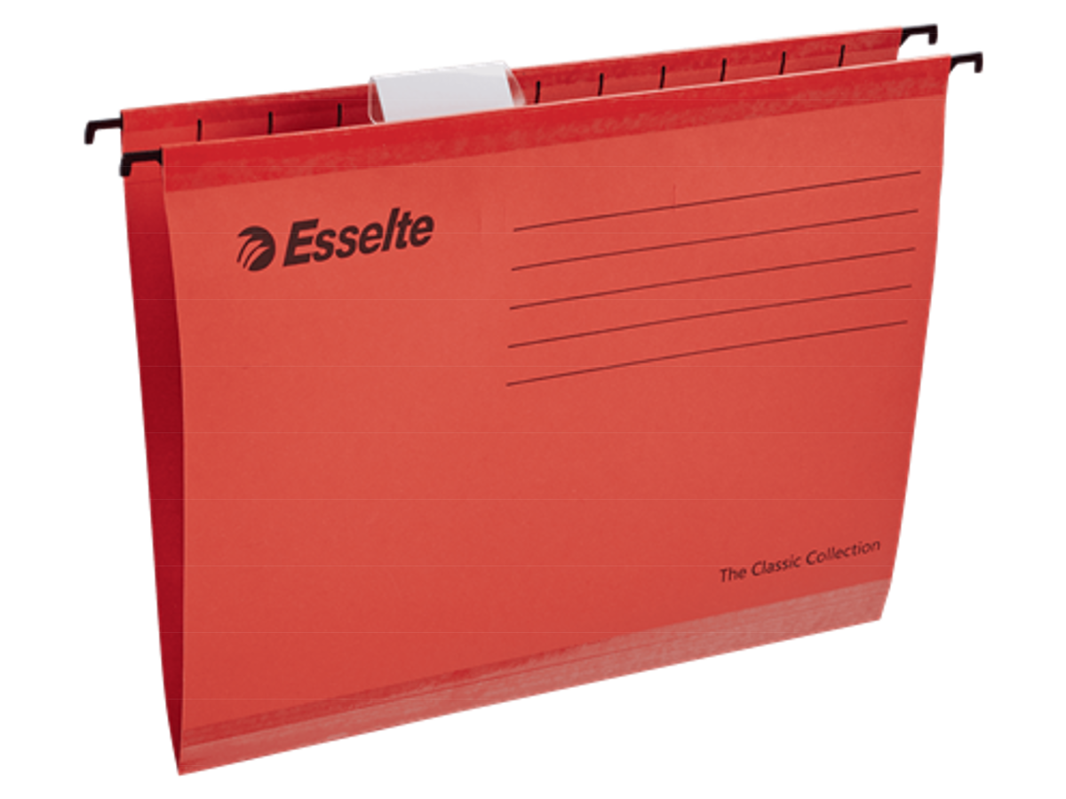Denne Hængemappe Esselte Classic forstærket A4, er det ideelle værktøj til effektiv organisering af dine dokumenter. Med sin skarpe røde farve, vil det virkelig skiller sig ud og tillægger et unikt og personligt præg til din mappe samling.