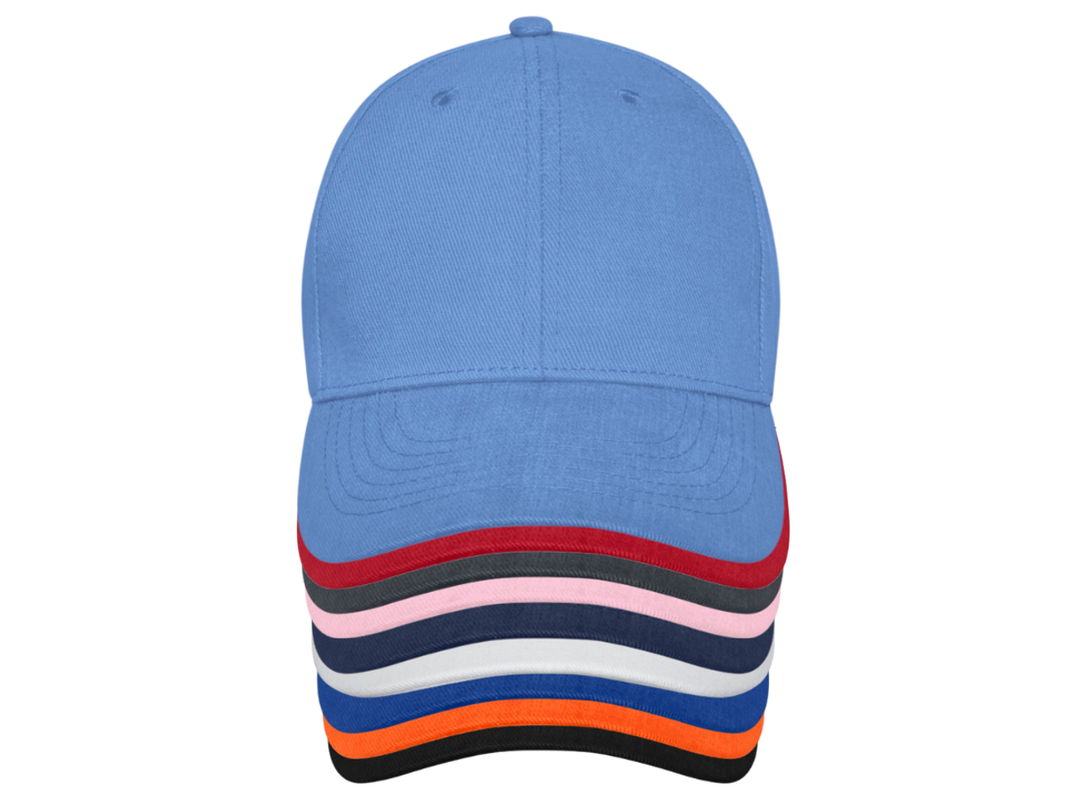 Kasket med præ-buet visir og seks broderede snørehuller til ventilation samt metalspændelukning.