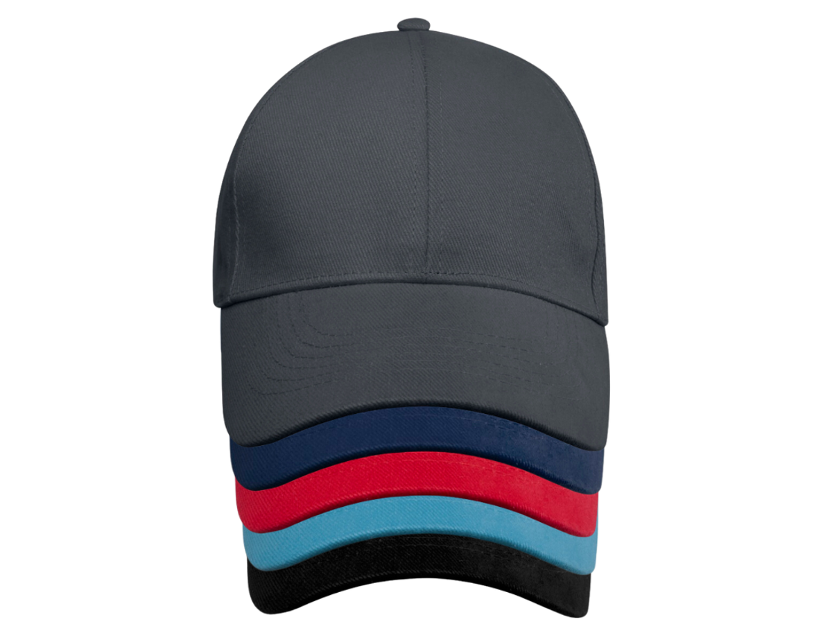 Bæredygtig reklamehovedbeklædning med præ-buet visir og broderede snørehuller til ventilation.