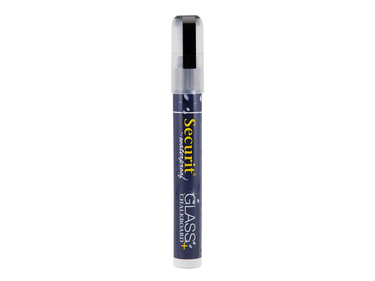 Securit® vandfast kridtmarker blev skabt til alle fans af Securit® originale kridtmarkere, der er interesserede i at skabe vandfaste tekster og tegninger. Brug den vandfaste kridtmarker derhjemme eller i et professionelt miljø, og skriv eller tegn din menu eller oplysninger på enhver ikke-porøs overflade, og vær sikker på, at regnen aldrig skyller det væk. vandfast, giftfri, meget dækkende sort flydende kridtmarker med en 2 - 6 mm skrå spids. Tværer ikke ud når det er tørret og er 100% modstandsdygtigt over for regn. Velegnet til glas, metal, plast og andre ikke-porøse overflader såsom Securit® Tavler. Let at bruge: ryst pennen, tag hætten af, pres spidsen ned, skriv eller tegn, og lad det tørre i et par minutter. Brug Securit® Cleaner til rengøring. Den vandfaste kridtmarker fås i forskellige farver med enten en skrå eller stor blokspids i 2 størrelser