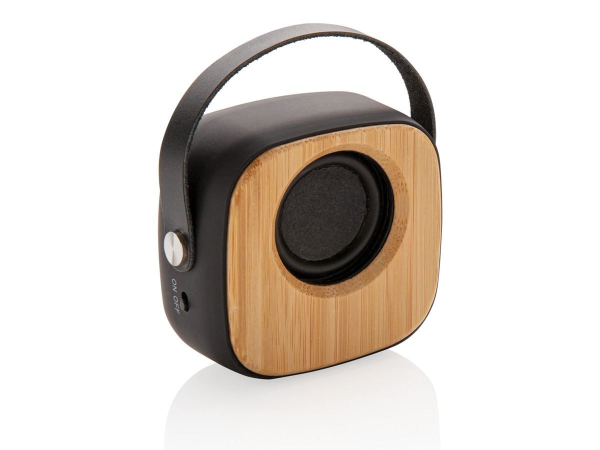 3W højtaler i naturlig bambus med indbygget 500 mAh litium batteri. Spilletid op til 4 timer på en opladning. Har BT 5.0 der virker i op til en radius på 10 meter. Lavet i naturlig bambus, ABS, soft touch finish samt PU strop.
