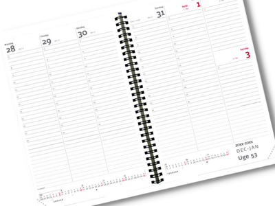 Med dagskalenderen har du måske ikke samme timeoversigt, som timekalenderen giver. Men du får langt mere plads til at notere dagens aftaler og opgaver ned. Et lille tip: Er du den kreative type, hvor det blanke papir ”trigger” en lyst efter at grifle dine idéer og To-Do’s ned - er en dagskalender måske det rette.