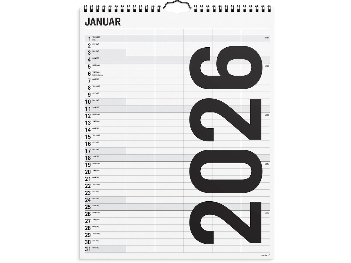 Mayland præsenterer deres vægkalendere for 2026, som kombinerer funktionalitet med æstetisk appel. Disse kalendere er designet til at imødekomme behovene hos både private og professionelle brugere, og de tilbyder en række forskellige temaer og layouts, der passer til enhver smag. Hver kalender er udstyret med tydelige datoer og plads til notater, hvilket gør det nemt at holde styr på vigtige begivenheder og aftaler. Materialerne er af høj kvalitet, hvilket sikrer holdbarhed og en elegant fremtoning, der kan pryde ethvert rum.