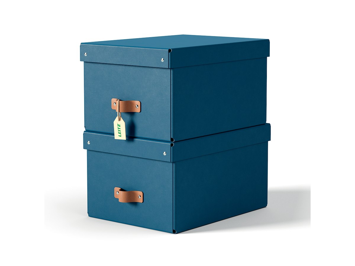 Hold orden og føl dig godt tilpas ved at bruge Leitz Puro medium opbevaringsbokse af karton med låg til at skabe øjeblikkelig opbevaring og rydde op i dine rum. Dette sæt med to dekorative opbevaringsbokse med en kapacitet på 17 liter hjælper med at holde orden i hjemmet og på kontoret, samtidig med at det giver stil til din opbevaring. Disse kasser af høj kvalitet kan stables for at spare plads og er ideelle til opbevaring af A4-dokumenter, bærbare computere, legetøj, sko og hobbymaterialer. Leitz medium bokse leveres fladt pakket og er hurtige og nemme at samle uden brug af værktøj. Disse stabelbare opbevaringsbokse er fremstillet af 100 % recirkuleret FSC-certificeret pap og kan skilles ad, så de kan recirkuleres 100 % efter brug. Udvalget af jordfarver - inspireret af naturens renhed og enkelhed - passer perfekt til din indretning og giver en følelse af ro i dine rum og på dit kontor. Hver opbevaringsboks har et håndtag i læder, som gør dem nemme at tage ned fra hylder og opbevaringsenheder. Fremstillet i Italien. Føl dig godt tilpas med Leitz.