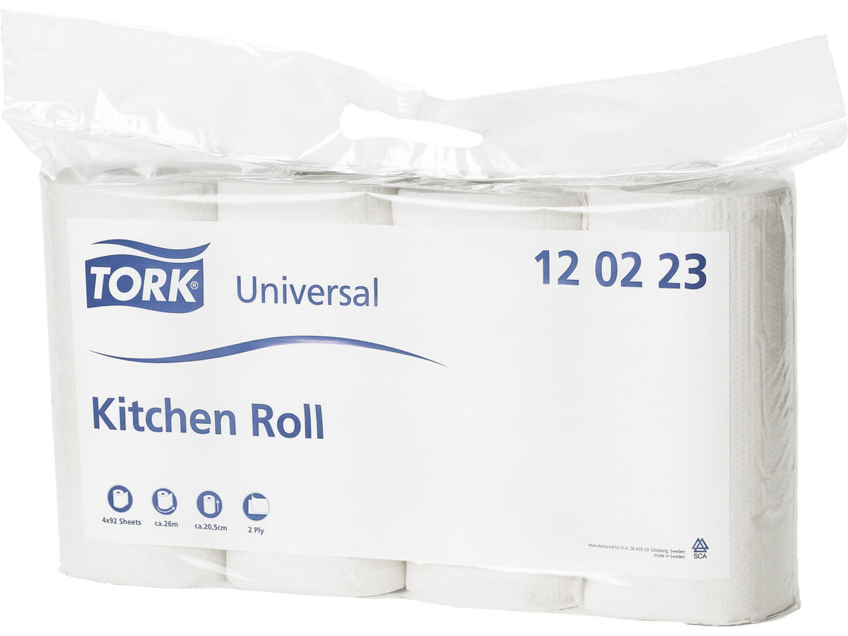 Køkkenrullen Tork Basic 120223 2-lags er ideel til den almindelige aftørring og håndaftørring.