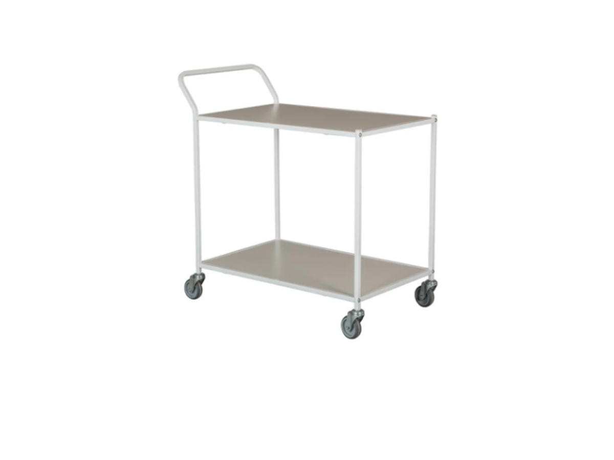 Tina trolly bordvogn med styr og 2 hylder imponerer med sit simple design. Hver detalje er omhyggeligt udformet for at tilføre en luksuriøs stemning til din servering.De roterende hjul gør det let at manøvrere Trolly, hvilket gør den ideel til enhver serveringsopgave. Skub den elegant ind i rummet og imponer dine gæster med lethed. Bordvognen er konstrueret med materialer af høj kvalitet, der sikrer holdbarhed og stabilitet.