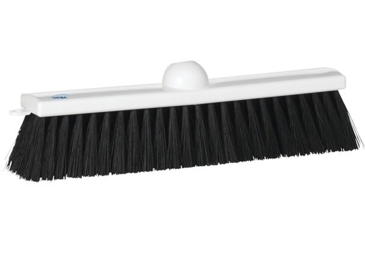Robust plast kostehoved, med gevind, 28 cm, bløde børster. Til indendørs brug.