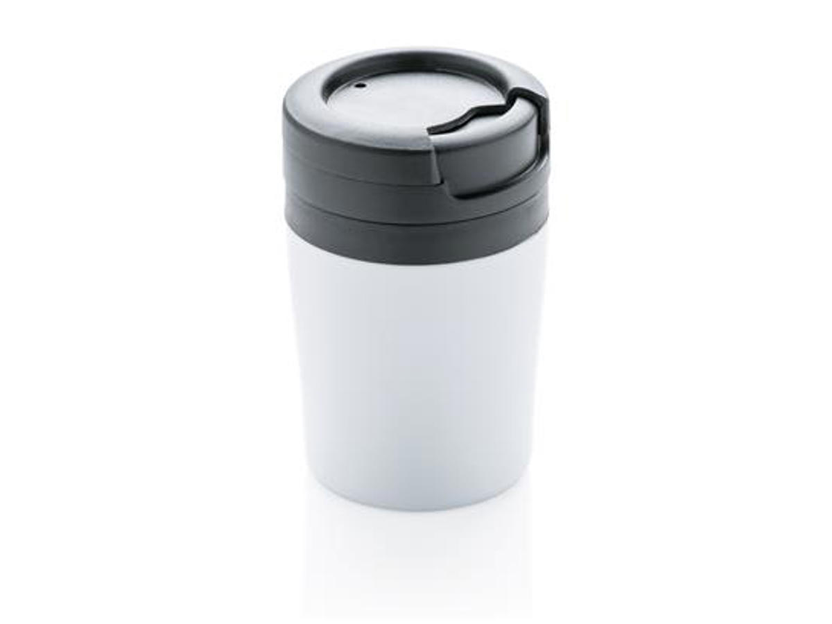 Mindre er godt. Med 8 cm højde er dette dobbeltvægget krus ideel til kaffemaskinen. PP indvending. Låg med tvist lukning for spildsikring. Godt til Espresso etc. Tåler kun håndopvask. Indhold 160ml. Registreret design®