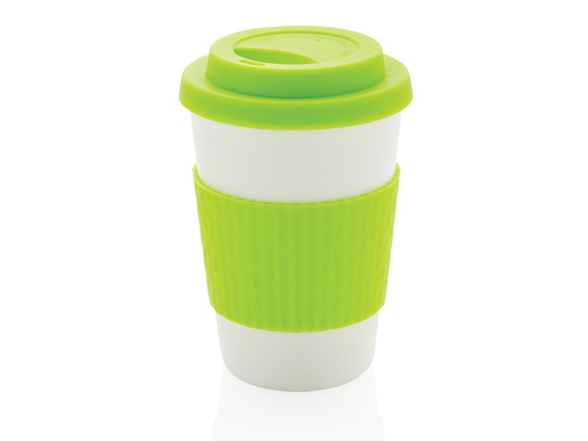 Stop engangsbrug! Medbring din egen kop og vær med på genbrugsrevolutionen så du samtidig bidrager til en verden uden engangsmateriale. Disse lette og holdbare kopper passer perfekt til "on the go". Kopperne er genbrugelige og lavet af 100% genanvendeligt PP materiale. Fødevaregodkendt og op til 100 grader. Med silikone låg og omslag. Tåler opvaskemaskine samt mikroovn. Passer til de fleste kaffemaskiner. Indhold: 270ml.