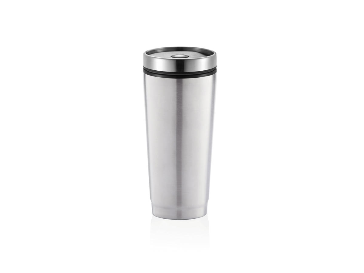 350ml krus i rustfrit stål på ydersiden og PP på indersiden, med skruelåg og enestående trykknaplukning til at forhindre spild. Velegnet til betjening med en hånd. Registreret design®