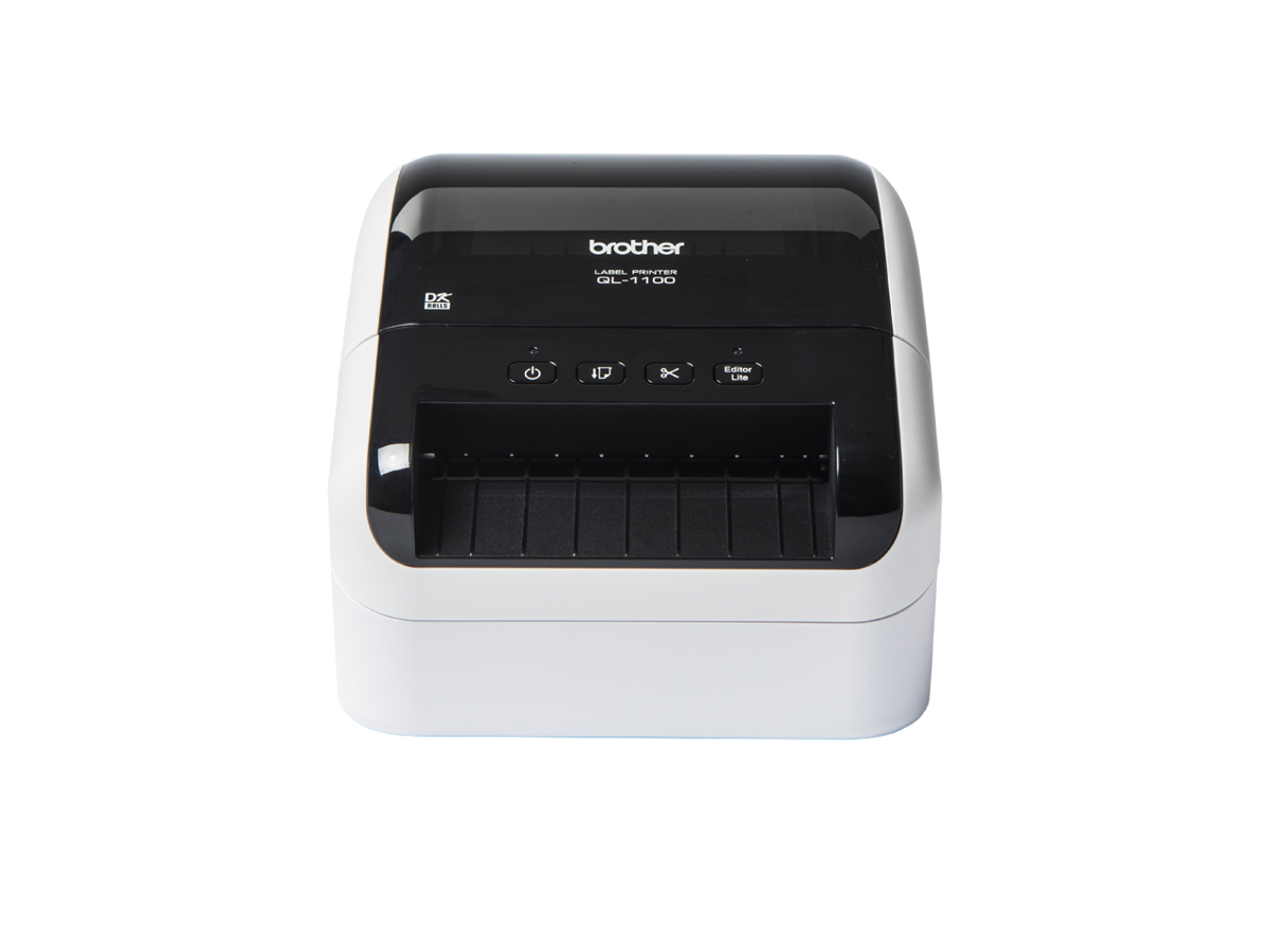 • QL-1100c har et printhoved med en bredde på 101,6 mm og er kompatibel med tredjeparts-softwarepakker med labels fra kurervirksomheder samt pakkeleveringsfirmaer.