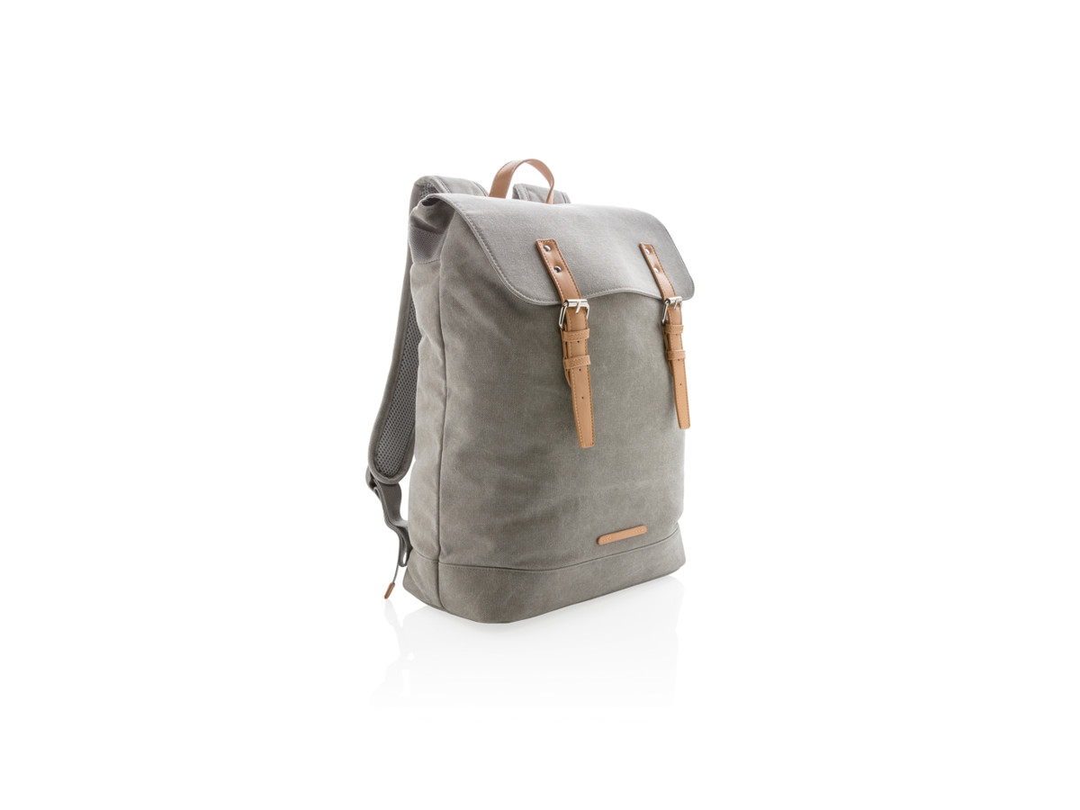 Opbevar dine ejendele i denne holdbare kanvas rygsæk. Denne model har en polstret del til din computer på op til 15,6". Klap foroven med magnetiske spænder af imiteret skind. PVC-fri.