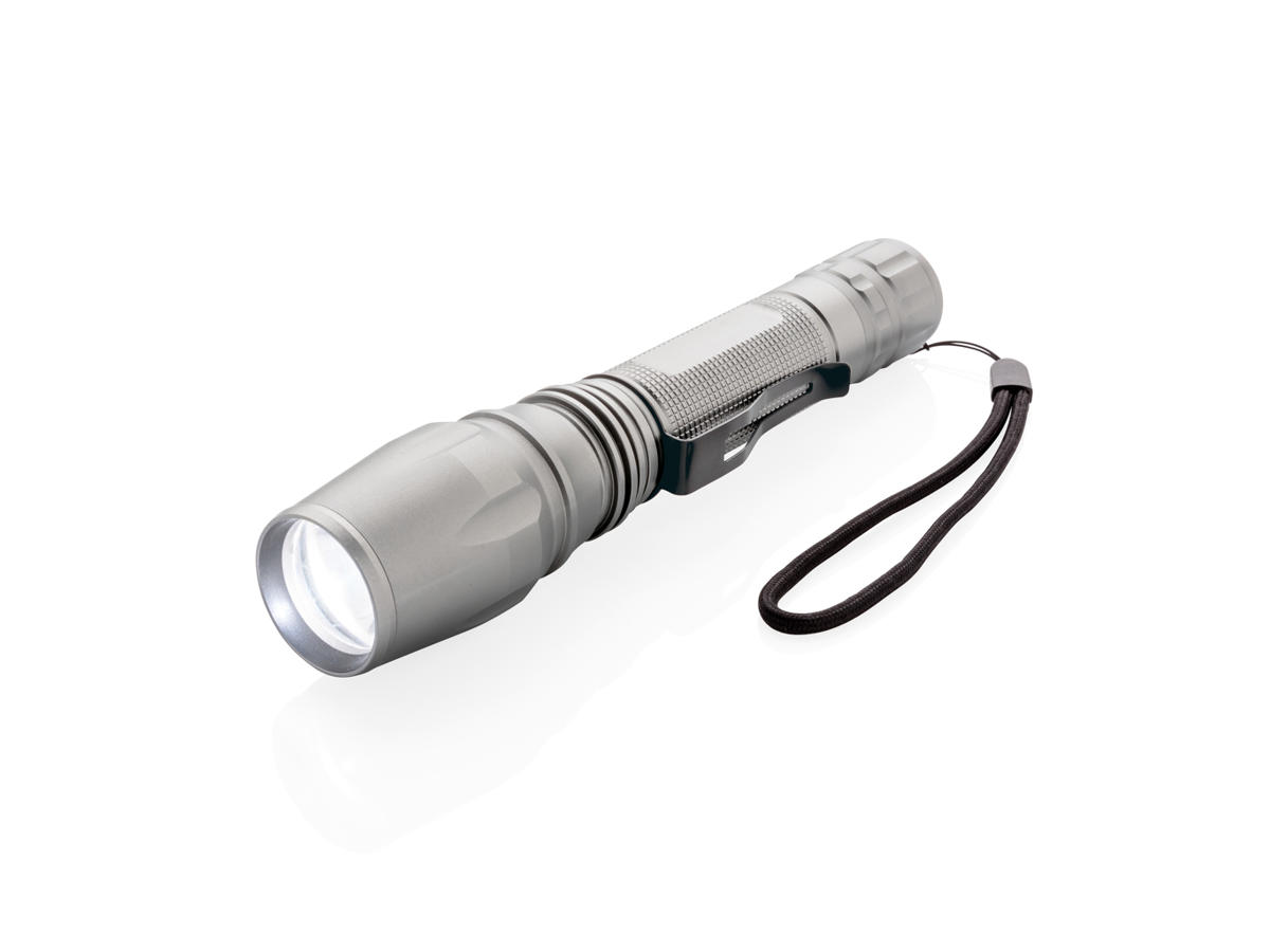 Super skarp og robust 10W CREE LED-lygte, der klarer sig under de sværeste betingelser. Den holdbare aluminiumlygte er IPX 4 vandtæt og stødsikker op til 1 meters fald. Lygtens stråle kan indstilles til at fokusere eller oplyse et større område. Med bælte clip til at bære lygten. 250 lumen og brændetid på 6 timer. Inkl. batterier til umiddelbar brug.