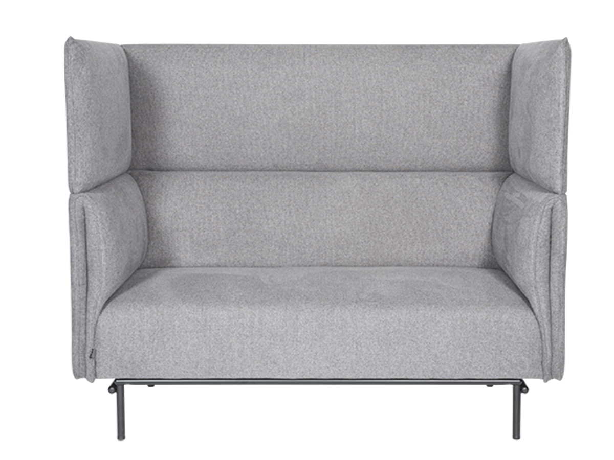 QUBIC er en akustiksofa med sort stel (4 ben), der er opbygget af lydabsorberende materialer.