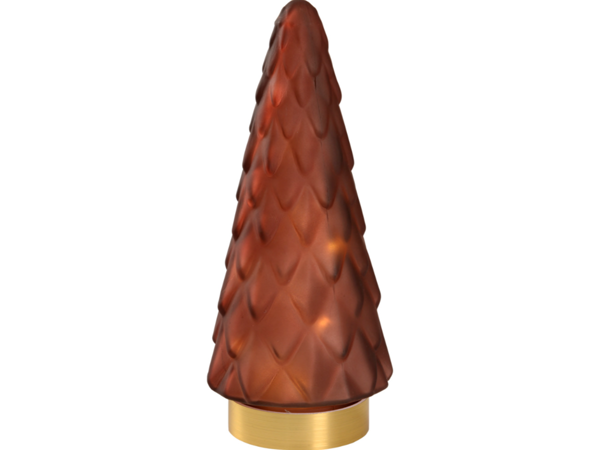 Flot og elegant glasdekoration til recpetions disken, bordene eller vinduerne. Træet er lavet i et smukt glas og med en flot guld bund som giver det sidste touch til et eksklusivt look. Træet fås i mange forskellige farver og i klar og mat glas. Farverne kan bruges enekltvis, men også med fordel mixes som man har lyst til. Kun fantasien sætter grænser Indeholder 10 LED lys.