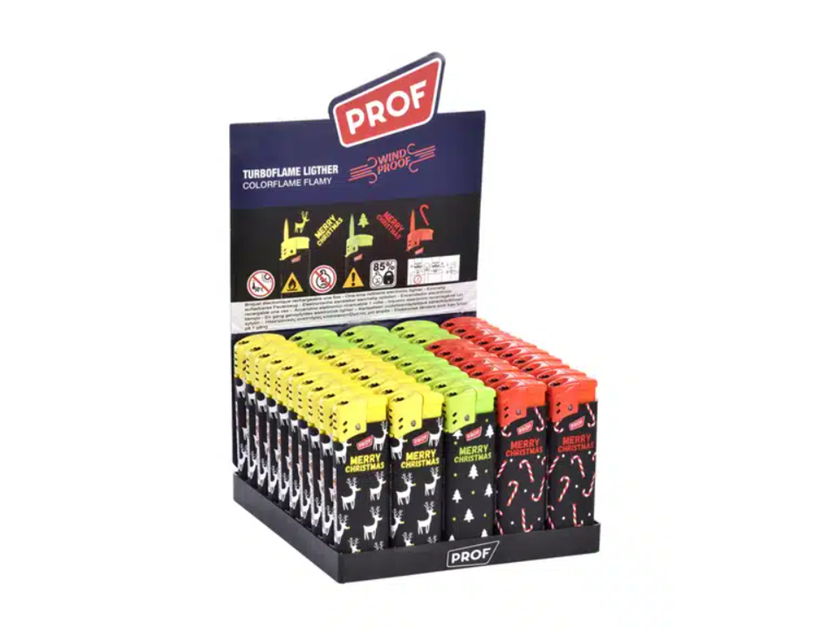 Assorteret stormlighter med print af julemotiver.