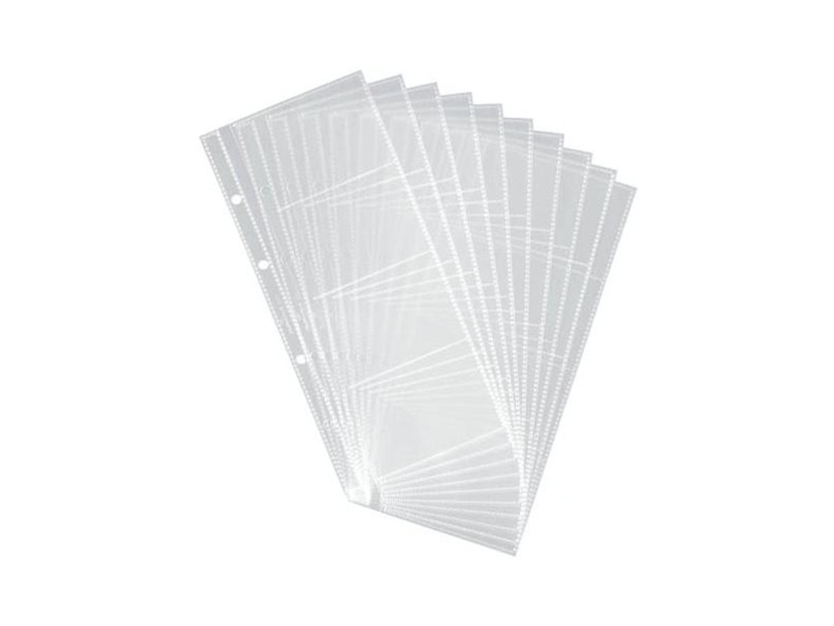 Pakke med 10 gennemsigtige lommer til 80 visitkort i størrelse 90 x 57 mm.