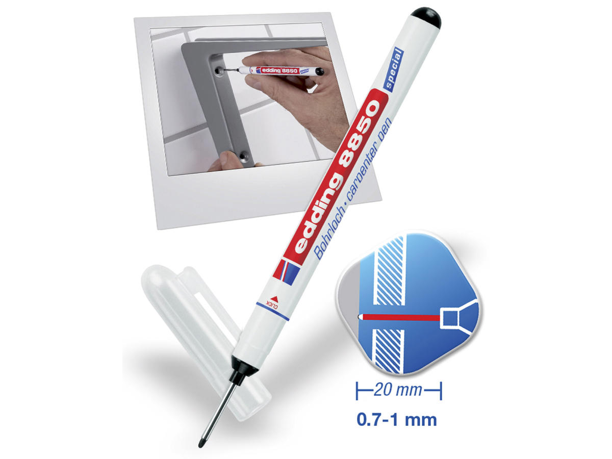 Tømrerpen edding 8850 er et værktøj, der er designet til at være effektiv, praktisk og holdbar. Med sin ekstra lange, fine spids er det ideelt til markering på steder, der er vanskelige at tilgå. Dette gør den til det bedste værktøj, når du skal markere nøjagtigt, hvor der skal bygges - uanset om det er til professionel eller hobbybrug.