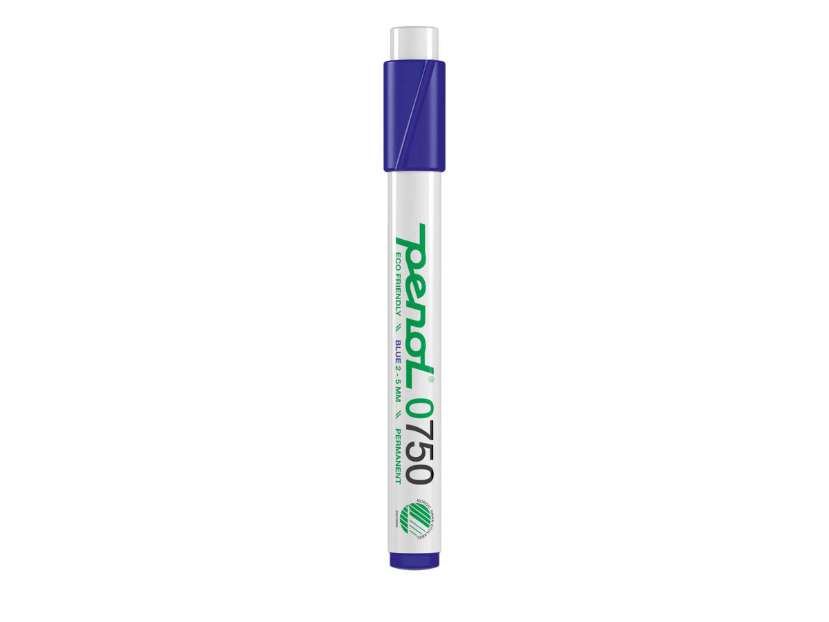 Markeren er med alkoholbaseret permanent blæk, skrå spids og plastbeholder.