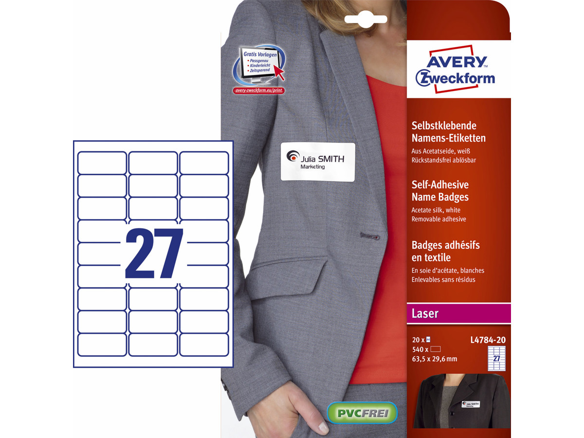 Med Avery's L4784 selvklæbende navneskilte kan du let holde styr på alle deltagere og gøre kommunikationen lettere. Navneskiltene er nemme at printe, og det klare og læsbare print vil sikre, at alle nemt kan identificere hinanden. Healingsprocessen ved en event eller konference bliver således hurtig og smidig.