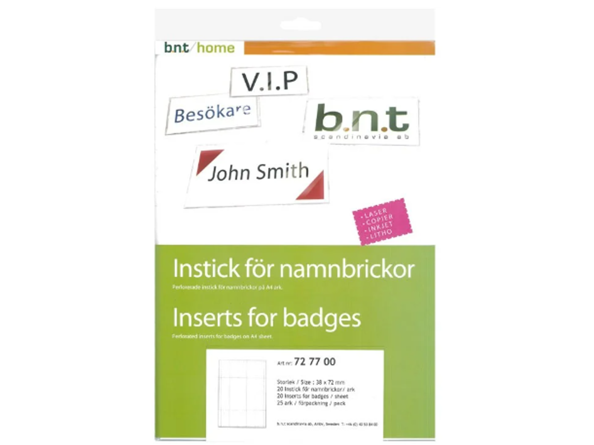 Indstik til navneskilt 40x75mm 25 ark BNT