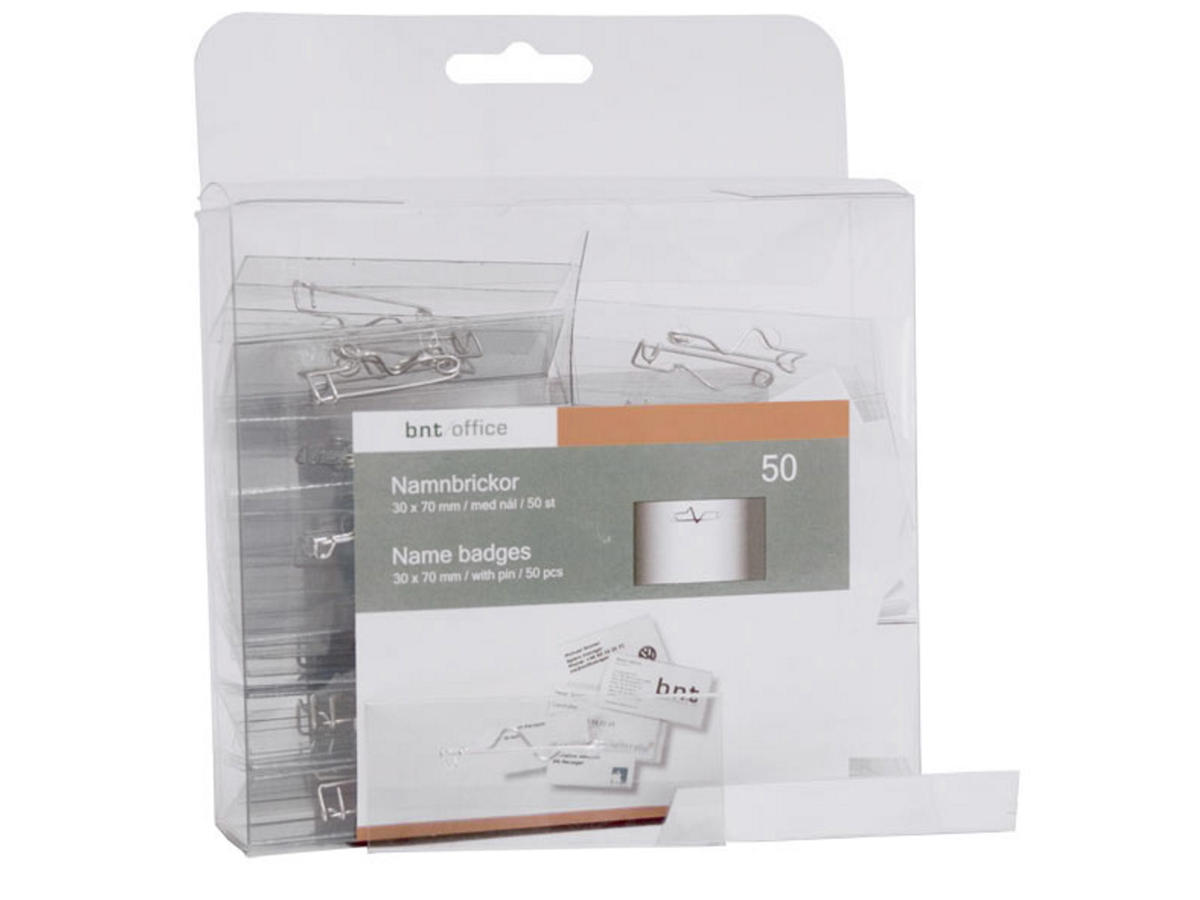 Navneskilt med sikkerhedsnål.
